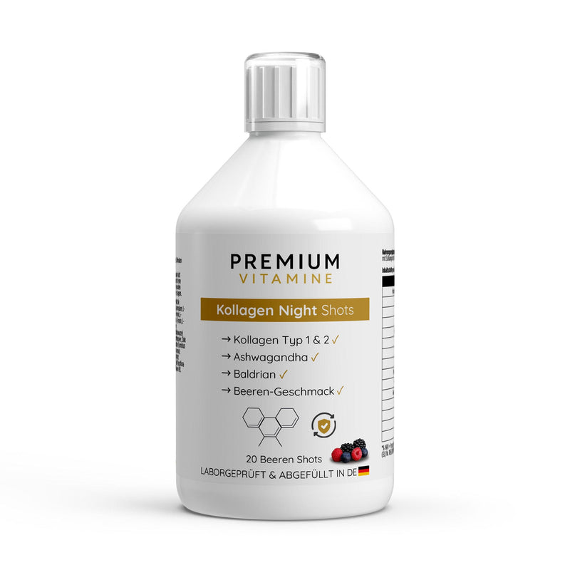 Kollagen Night Plus+ Shots in praktischer 500ml-Flasche kombiniert hydrolysiertes Kollagen mit synergistischen Nährstoffen für optimale Hautregeneration während der Nachtphase. Die flüssige Formulierung ermöglicht schnelle Absorption und maximale Bioverfügbarkeit. Kollagen unterstützt Hautstraffheit, Elastizität und Feuchtigkeitsretention von innen heraus. Die zusätzlichen Wirkstoffe fördern Schlafqualität und nächtliche Regenerationsprozesse. Ideal zur Anwendung vor dem Schlafengehen für synergistische Effekte mit natürlichen Regenerationsphasen. Die 500ml-Packung bietet etwa 10-16 Portionen je nach Dosierung. Perfekt für alle, die Hautqualität, Kollagenstruktur und ganzheitliche Nachtregeneration gezielt unterstützen möchten.