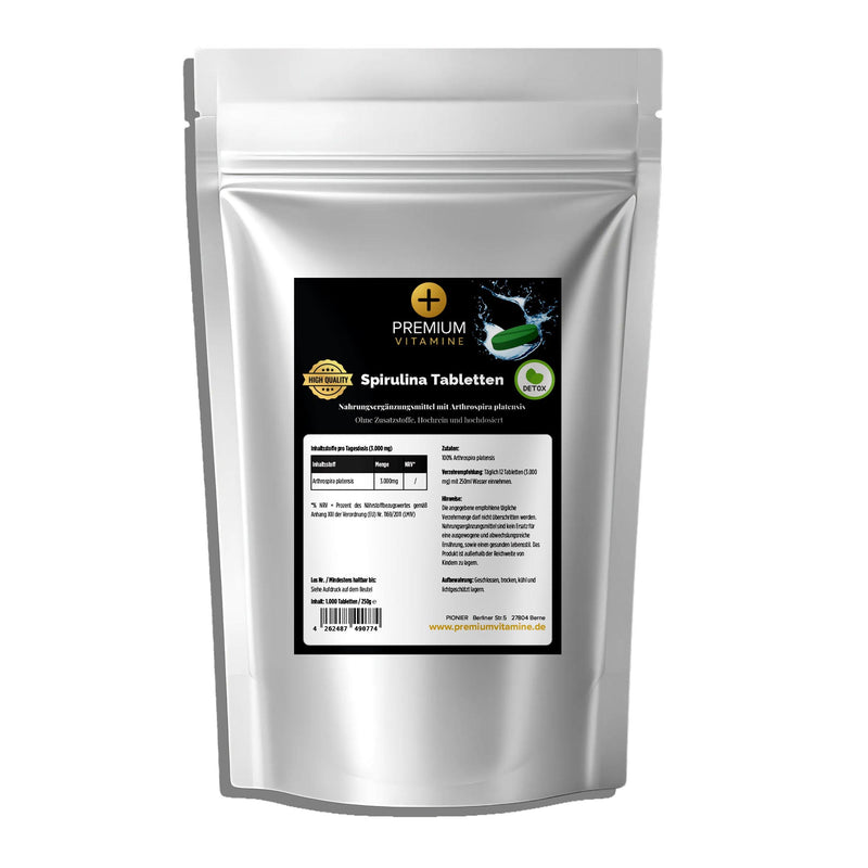 Spirulina in der umfangreichen 1.000er-Packung ist eine nährstoffdichte Cyanobakterie mit außergewöhnlichem Proteingehalt von bis zu 70%. Das Superfood enthält alle neun essentiellen Aminosäuren, Beta-Carotin, Eisen, Magnesium und Phycocyanin – ein potentes Antioxidans. Spirulina fördert Ausdauer, mentale Klarheit und unterstützt das Immunsystem durch ihre immunmodulierenden Eigenschaften. Die hohe Bioverfügbarkeit ermöglicht optimale Nährstoffaufnahme. Die praktischen Tabletten sind ideal für Sportler, Veganer und alle, die ihre Ernährung mit konzentrierten Mikronährstoffen bereichern möchten. Die 1.000er-Packung reicht etwa 3-4 Monate. Natürliche Energiequelle für Vitalität und Leistung.
